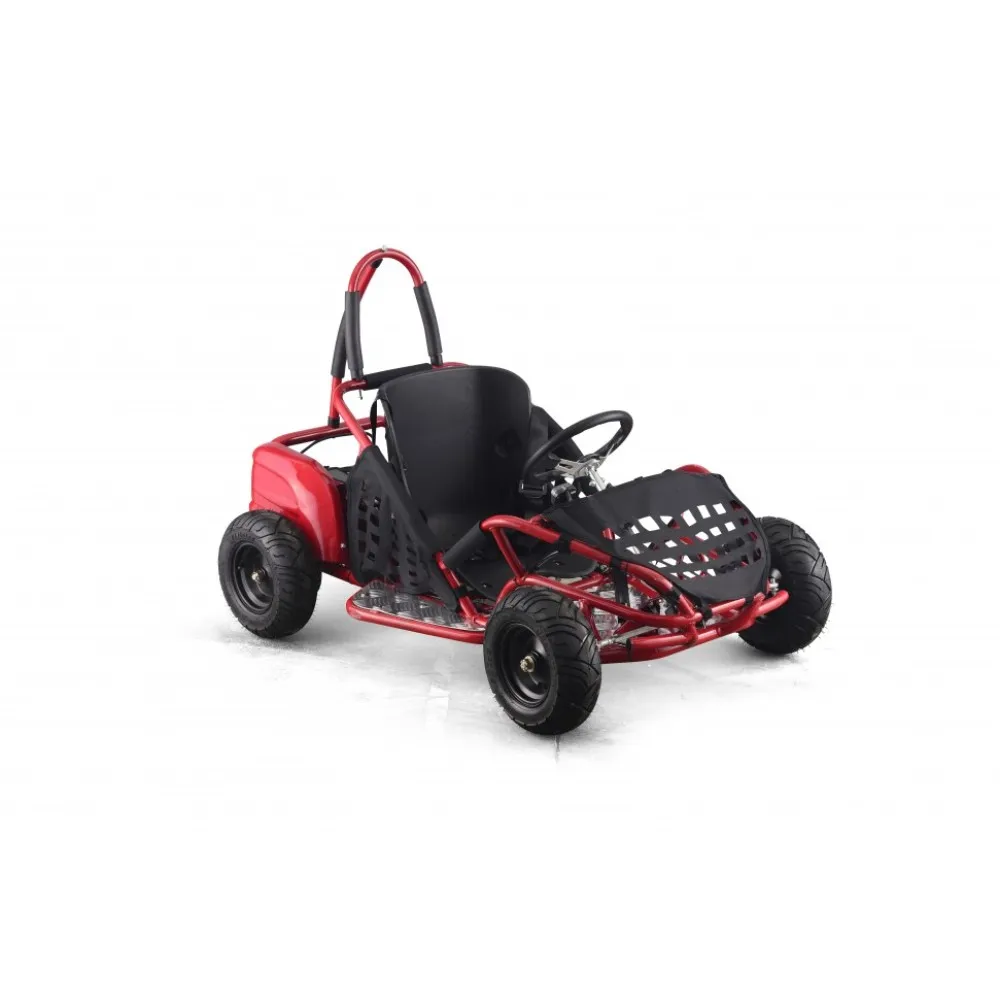 Общая масса машины – 35 кг, максимальная грузоподъемность – 60 кг. Компактные эргономичные размеры техники позволяют транспортировать багги другими способами. При мощности мотора 1000 Вт техника способна развивать скорость до 35 км/час и преодолевать расстояние до 25 км. Обратите внимание на посадку. Сиденье изготовлено так, чтобы ездок ощущал комфорт и безопасность передвижения, а родители юного гонщика не переживали за него. При этом дополнительные аксессуары защиты для ребенка не станут лишними.