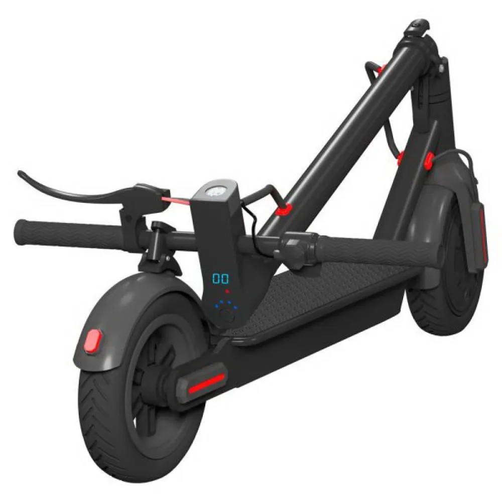 Модель электрического самоката выдерживает нагрузки до 100 кг и оснащена двойными амортизаторами для плавного движения. Поскольку рулевое колесо имеет функцию регулировки высоты, которая зависит от роста водителя, самокат можно использовать как для взрослых, так и для детей. Модель имеет конструкцию, которая легко складывается и раскрывается при необходимости. В сложенном виде электрический самокат занимает очень мало места. Его очень удобно хранить в квартире, транспортировать в багажнике автомобиля, при необходимости брать с собой, перемещать общественным транспортом.