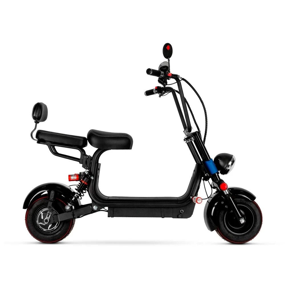 Электроскутер Mini Citycoco GT X2 оснащен колесами в 10", обеспечивающими плавное движение и амортизацию на любой дороге, так же максимальная нагрузка в 150 кг. и наличие двух сидений даёт возможность ездить на скутере вдвоём. Система гидравлического торможения обеспечит дополнительную безопасность при движении, а фонарь позволит совершать вечерние и ночные комфортные катания.