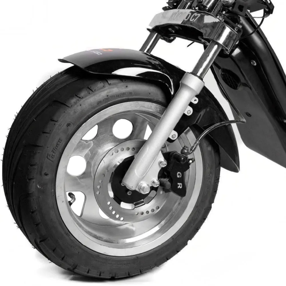 Kugoo C7 – большой современный электроскутер на двоих ездоков предназначен для езды по городской и сельской местности. Завоевал признание райдеров благодаря отличным мощностным и скоростным характеристикам. При мощности двигателя 3950 Вт техника способна разгоняться до приличной скорости (70 км/час) и проезжать большие расстояния.