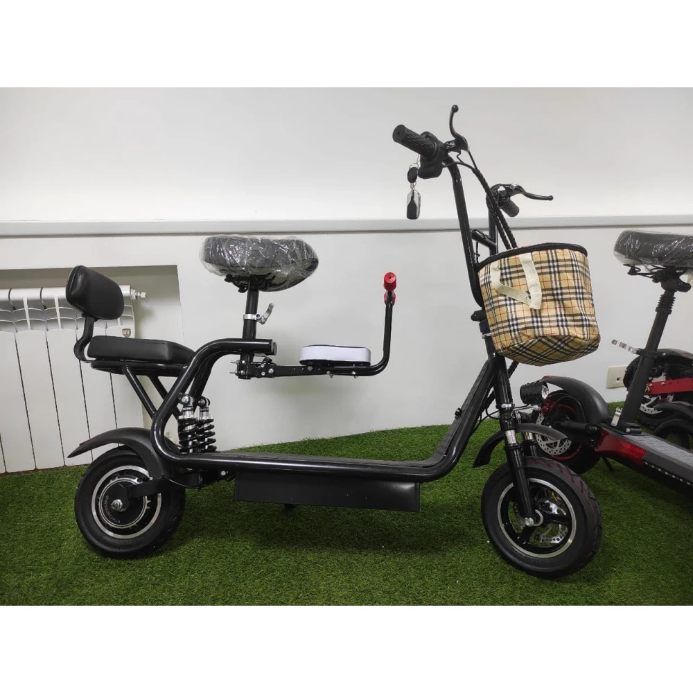 Основная особенность модели – раздельные сидения. Есть основное сидение для водителя, которое расположено на более высоком уровне, и два дополнительных - для пассажиров, у которых есть спинка для комфортной езды.