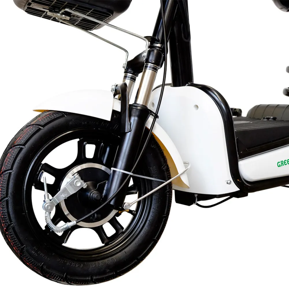 Электроскутер GreenCamel Тайфун 400 (48V 12Ah 400W) также оснащен передними и задними тормозами, обеспечивая безопасность во время движения. Светодиодные фары и задние огни обеспечивают хорошую видимость как для вас, так и для окружающих.