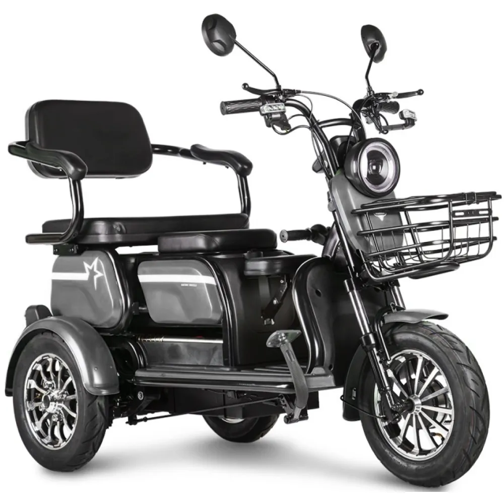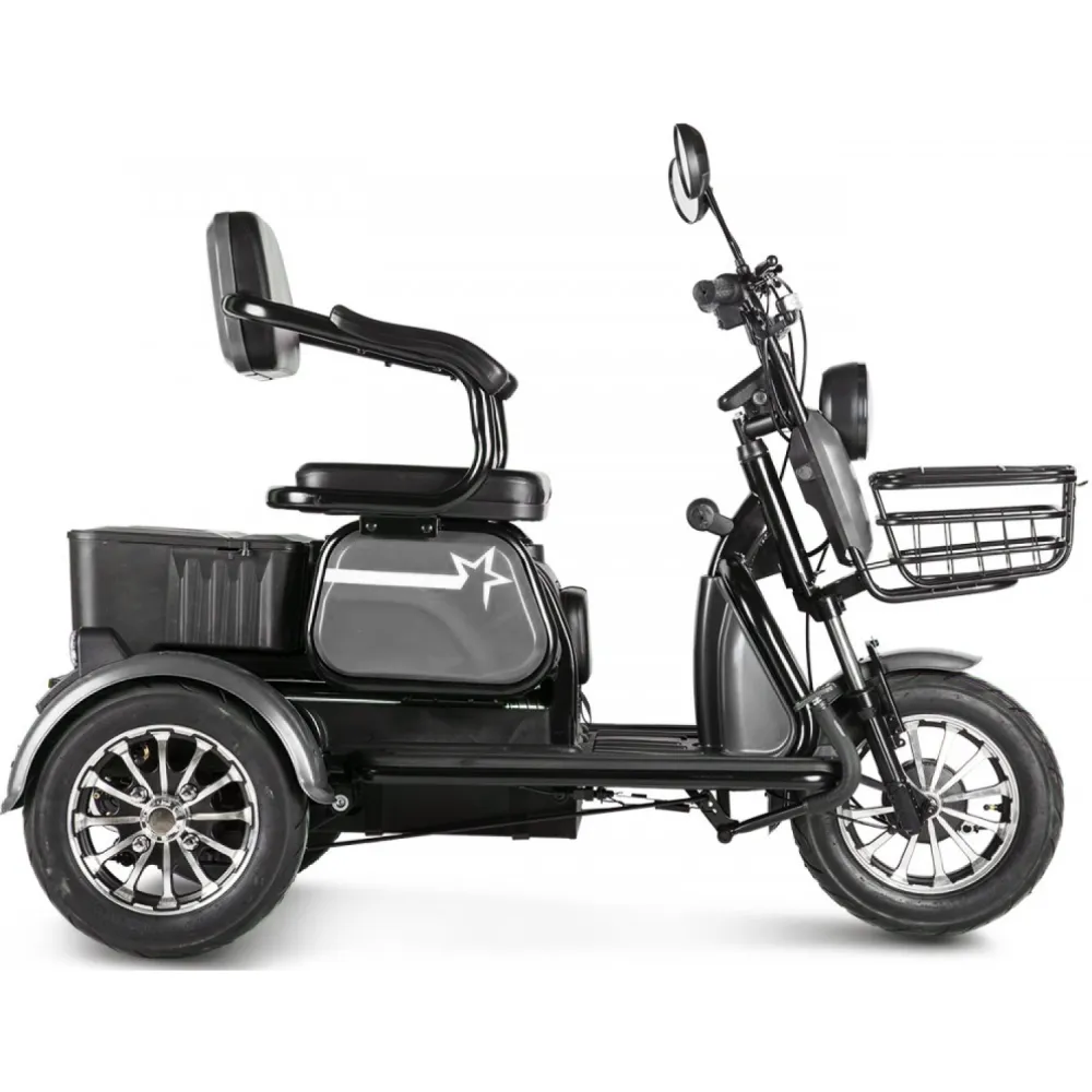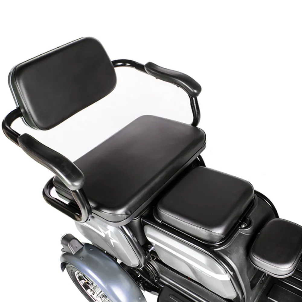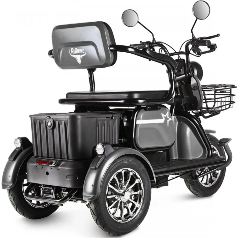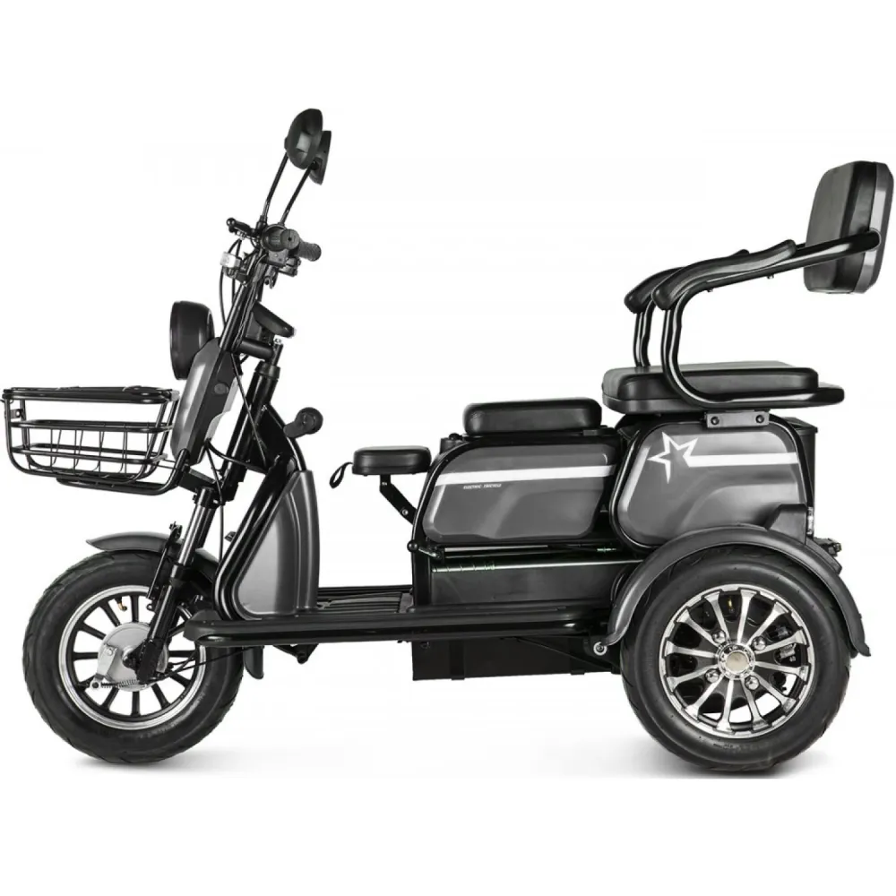 Электротрицикл Rutrike Пилот серый – практичная модель для активного время провождения в кругу друзей и семьи. Выглядит современно и привлекательно. Купить трицикл по разумной стоимости, без привлечения перекупщиков предлагает наш интернет-магазин. Техника оснащена мощным электродвижком на 650 Вт, допускает использование 1 из двух АКБ: на 20 и 32 А*ч. Надувные внедорожные 8-дюймовые колеса отлично сцепляются с поверхностью, развивают безопасную скорость до 25 км/час. При этом максимальный пробег без дополнительной подзарядки составляет 30 км, достаточный для отдыха на природе. Модель комфортная и удобная благодаря 3 сиденьям: основным креслом с удобной анатомической спинкой, дополнительным сиденьем и детским. Последнее расположено перед водителем, позволяет держать под контролем ребенка, исключить непредвиденные ситуации в дороге. Кроме частного использования техника доказала эффективность при эксплуатации в туристическом бизнесе. Оснащенность задней подвески пружиной и барабанной тормозной системой обещает плавность езды по проблематичной местности и своевременность торможения. Надеемся, вы остались в восторге от трицикла. Приглашаем приступить к оформлению заказа.