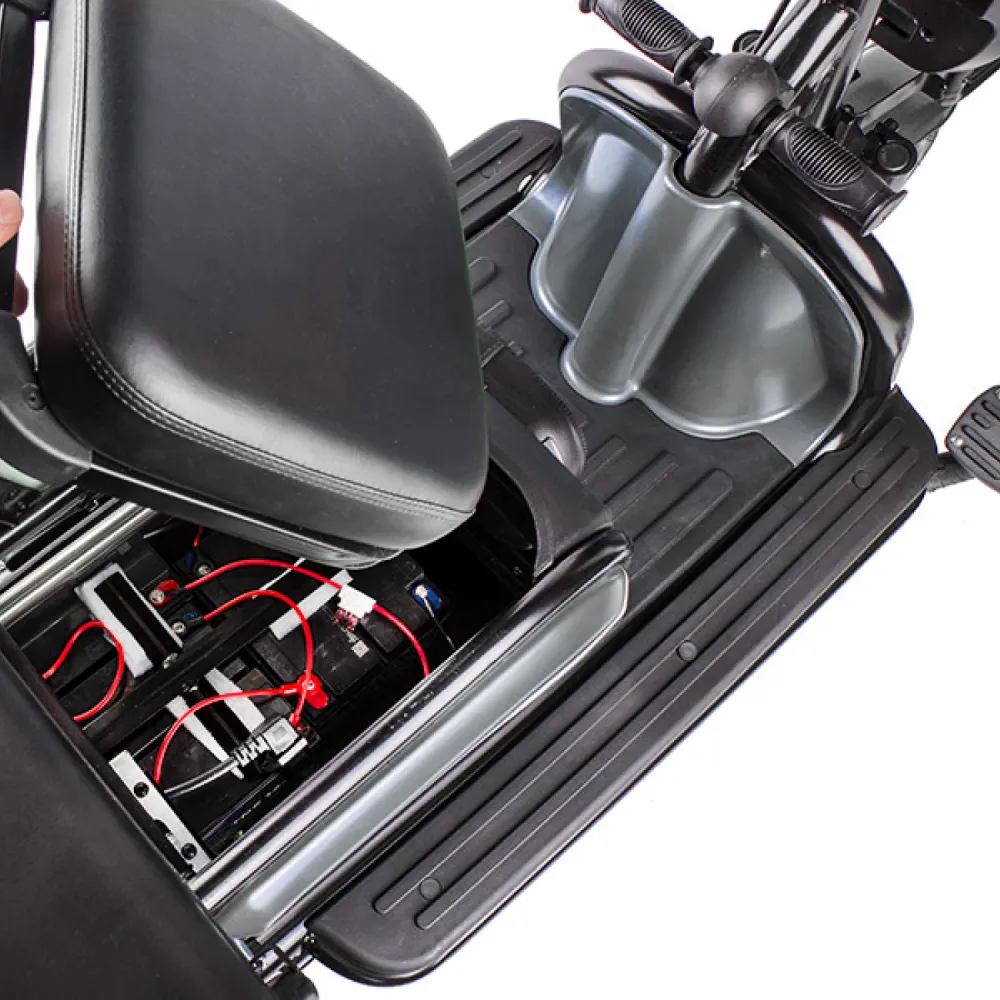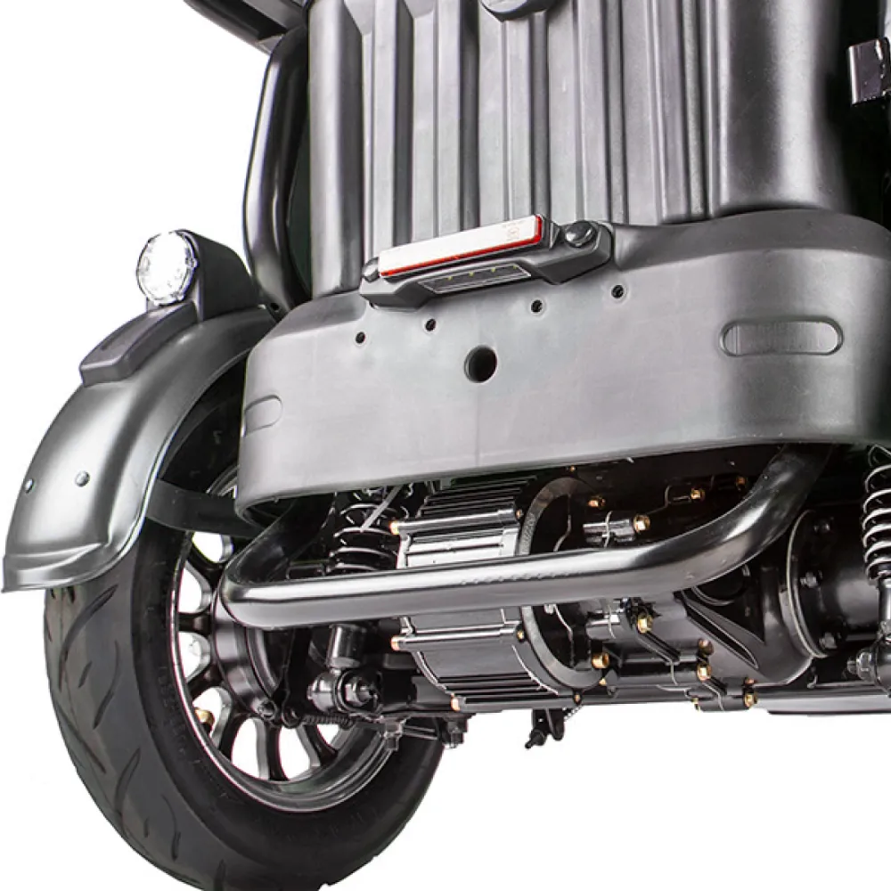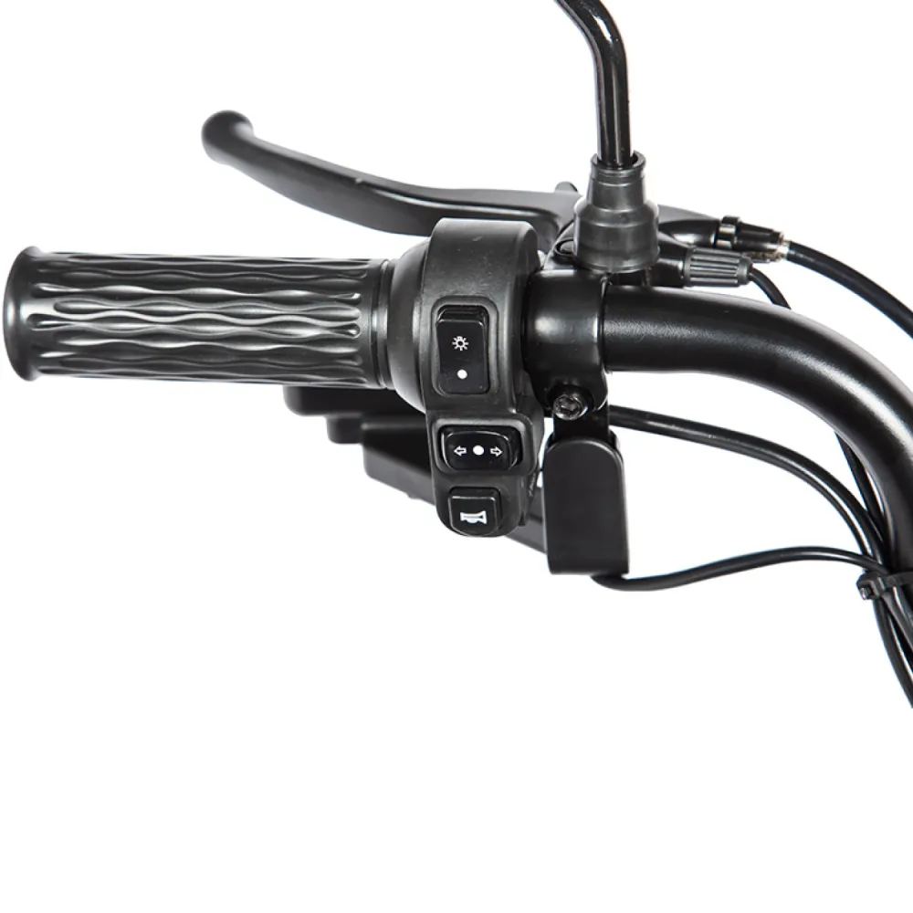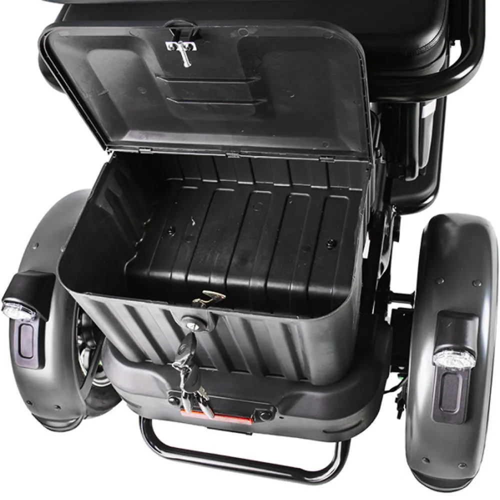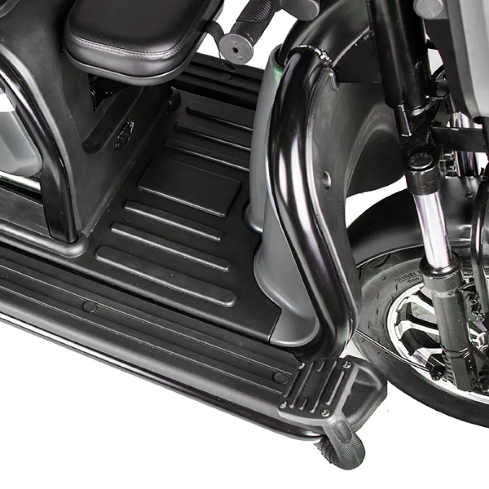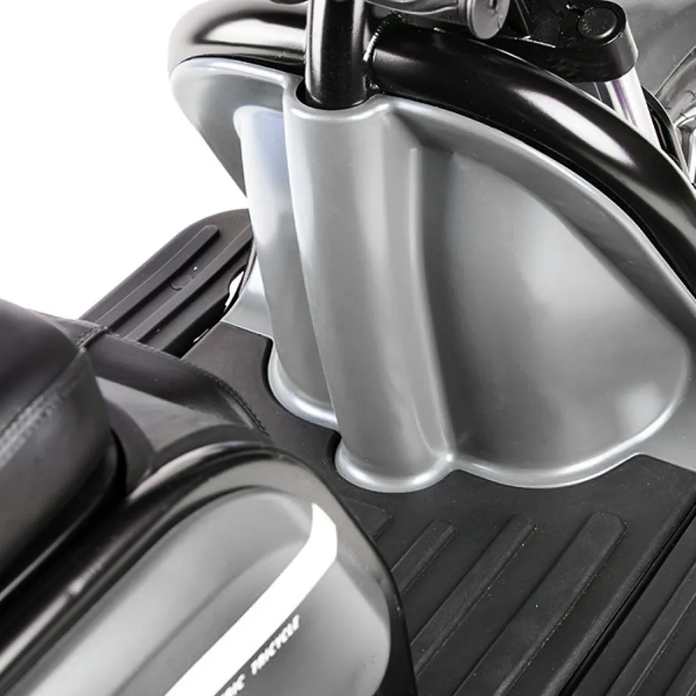 Электротрицикл Rutrike Пилот серый – практичная модель для активного время провождения в кругу друзей и семьи. Выглядит современно и привлекательно. Купить трицикл по разумной стоимости, без привлечения перекупщиков предлагает наш интернет-магазин. Техника оснащена мощным электродвижком на 650 Вт, допускает использование 1 из двух АКБ: на 20 и 32 А*ч. Надувные внедорожные 8-дюймовые колеса отлично сцепляются с поверхностью, развивают безопасную скорость до 25 км/час. При этом максимальный пробег без дополнительной подзарядки составляет 30 км, достаточный для отдыха на природе. Модель комфортная и удобная благодаря 3 сиденьям: основным креслом с удобной анатомической спинкой, дополнительным сиденьем и детским. Последнее расположено перед водителем, позволяет держать под контролем ребенка, исключить непредвиденные ситуации в дороге. Кроме частного использования техника доказала эффективность при эксплуатации в туристическом бизнесе. Оснащенность задней подвески пружиной и барабанной тормозной системой обещает плавность езды по проблематичной местности и своевременность торможения. Надеемся, вы остались в восторге от трицикла. Приглашаем приступить к оформлению заказа.