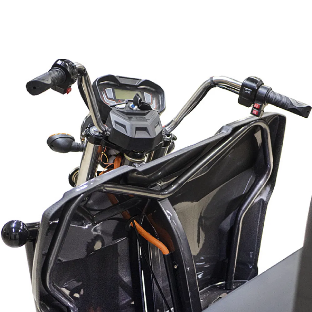 Грузовой электротрицикл Rutrike D4 NEXT II 60V 1500W новинка от компании rutrike. Трицикл d4 next массой 240 кг рассчитан на грузоподъемность до 1200 кг. Электротрицикл rutrike оснащен вместительным кузовом, модель идеально подходит для фермеров и предприимчивых людей. Новый rutrike d4 next предназначен для грузовых перевозок, считается одной из надежных и удобных моделей в своем сегменте. Трицикл rutrike может использоваться при любых погодных условиях. Купить грузовой электротрицикл Rutrike D4 NEXT II 60V 1500W и комплект аккумуляторов по выгодной цене можно на нашем официальном сайте интернет-магазина. Современные трициклы rutrike d4 next оборудованы мощным электродвижком на 1500 Вт. Технические характеристики грузовых трициклов позволяют разогнаться до 25 км/час. Заряда батареи электрических грузовых моделей достаточно на 80 км пути. Трицикл оснащен зеркалами заднего вида, информационным дисплеем и вместительным кузовом. Модель отличается большой вместительностью и отличными параметрами комфорта. Электротрицикл d4 1800 дополнительно оснащен надежной платформой для ног и комфортным пассажирским сиденьем. Грузовой электротрицикл next 1800 оснащен всем необходимым, управляется просто, не требует особого обучения. Линейки rutrike считаются лучшими среди грузовых моделей.