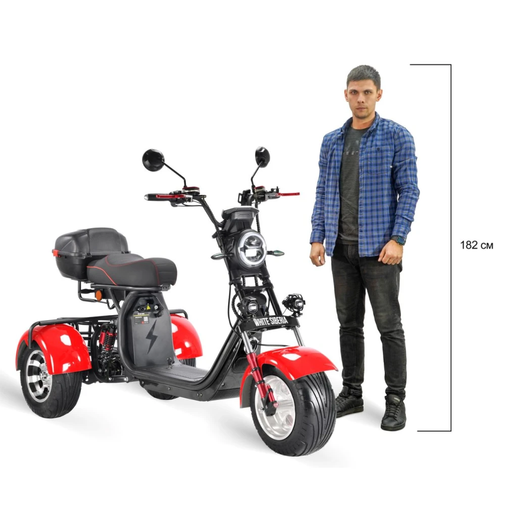 Трехколесный скутер CityCoco WS-Pro 3000W Trike+ красный - быстрый городской транспорт с литыми дисками и широкими колесами.