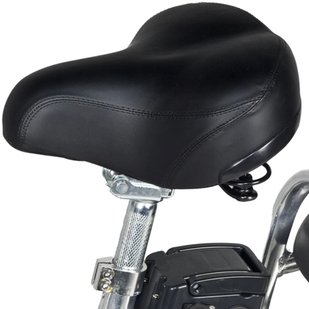 Модель рассчитана на водителя и пассажира. Оснащена удобным мягким водительским сиденьем и широким сиденьем со спинкой для пассажира. Повторяющие анатомические формы тела сиденья снимают нагрузку на позвоночник, дают возможность комфортного длительного путешествия.