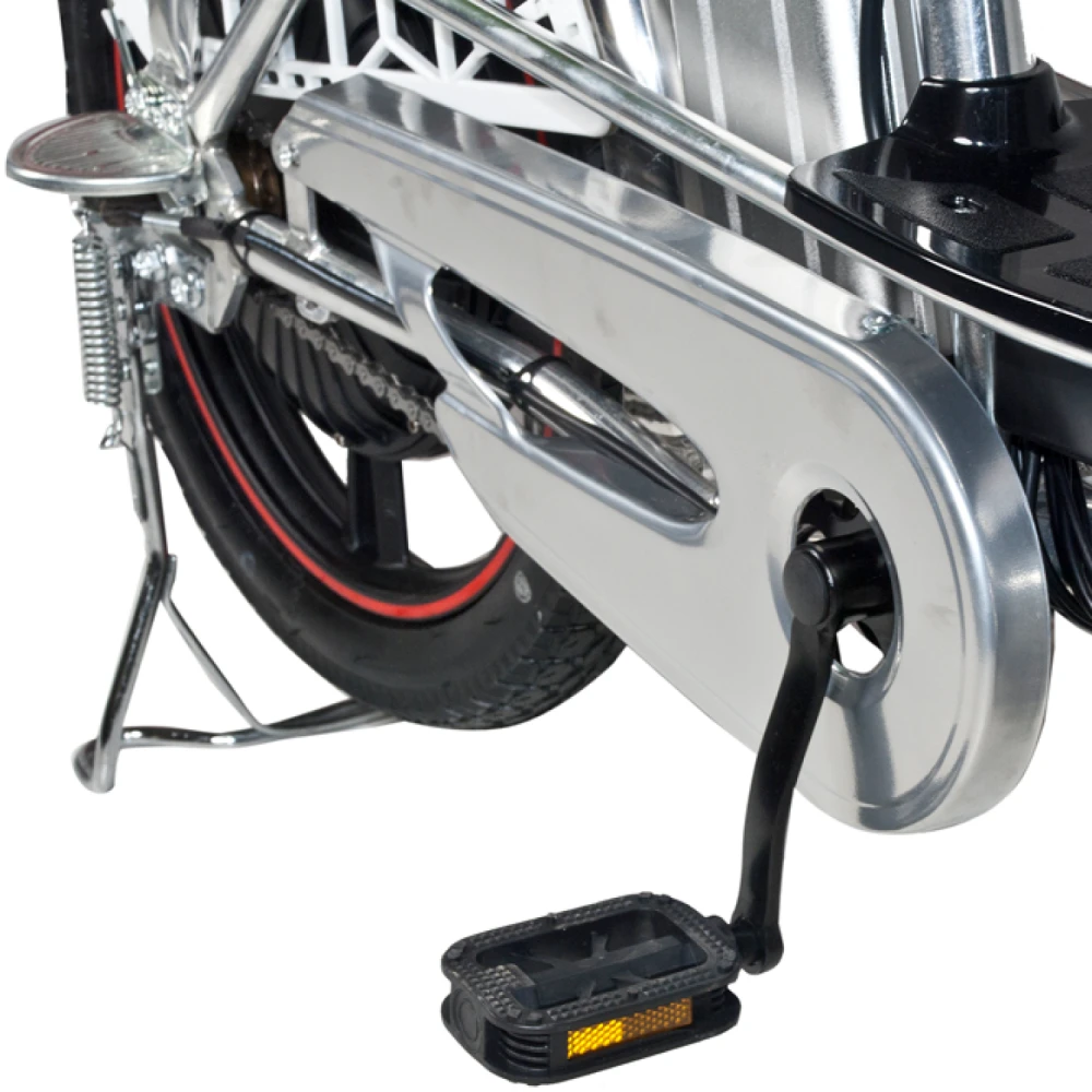 При мощности двигателя 500 Вт и АКБ 60 В, максимальная скорость составляет до 45 км/час, пробег на одной подзарядке до 35 км. Увеличить пробег в несколько раз можно посредством перехода на педальный режим.