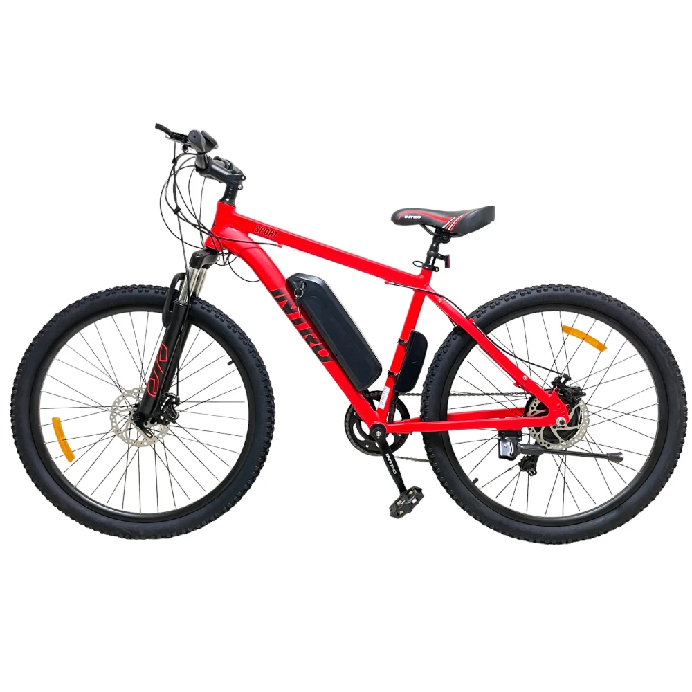 Электровелосипед INTRO Sport красного цвета - это уникальное транспортное средство, которое предлагает непревзойденный комфорт и возможность наслаждаться путешествием. С его помощью вы сможете преодолевать длинные расстояния без усталости и с легкостью.
