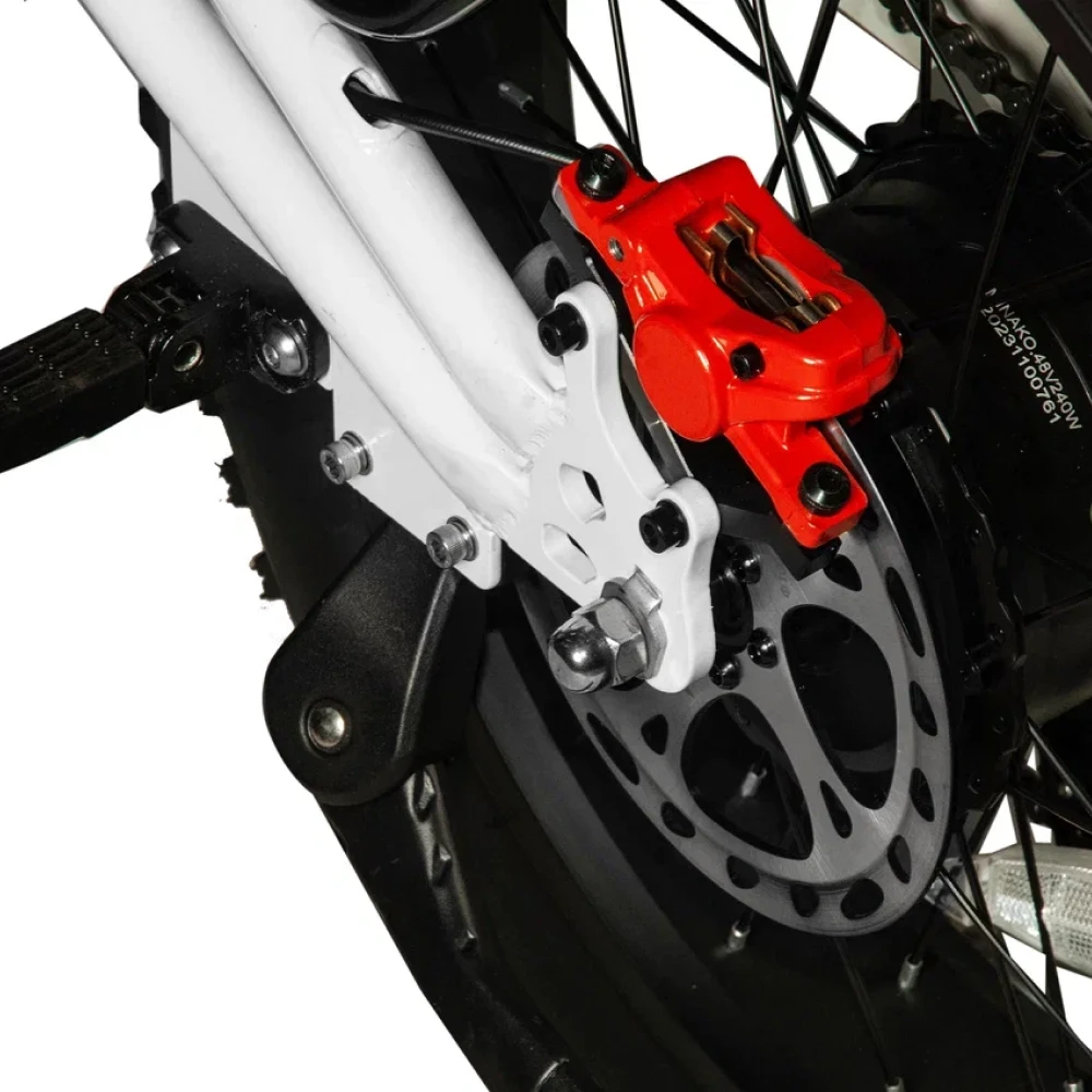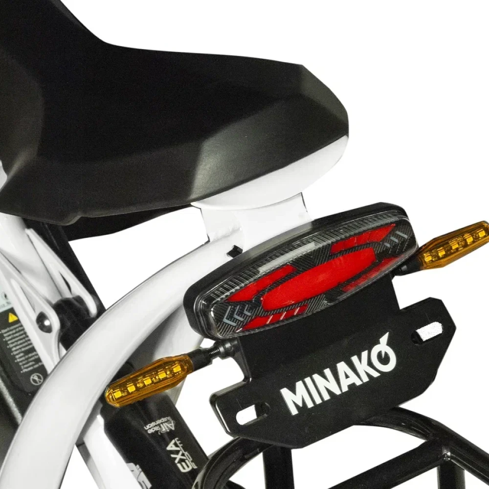 Электровелосипед Minako FOX (23Ah) Белый Спицы - это эпитомия элегантности, силы и инноваций. С максимальной скоростью 55 км/ч и мощным 1000W двигателем, он обеспечивает беспрецедентную производительность. Его необычный дизайн, напоминающий питбайк, в сочетании с мотоциклетной вилкой, создает неповторимый облик. 20-дюймовые колеса с большими внедорожными покрышками обеспечивают уверенность на любой поверхности. Гидравлические дисковые тормоза гарантируют безопасность, а пробег в 60 км на одном заряде 23Ah аккумулятора обеспечивает долгую эксплуатацию. Дополнительные удобства включают большую фару, небольшую сумку спереди и багажник сзади, который может служить местом для пассажира.