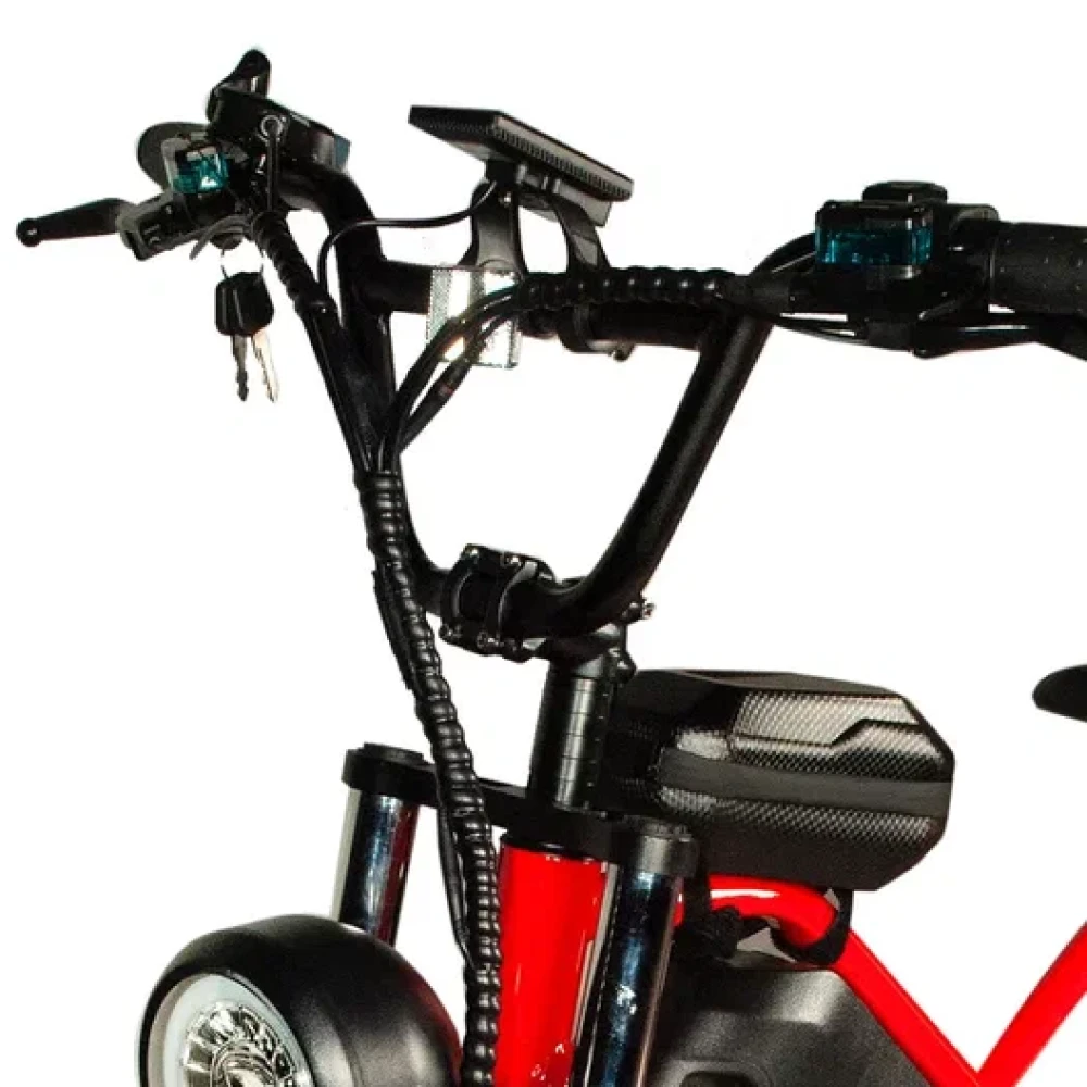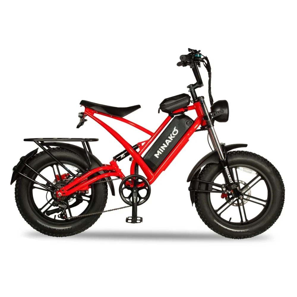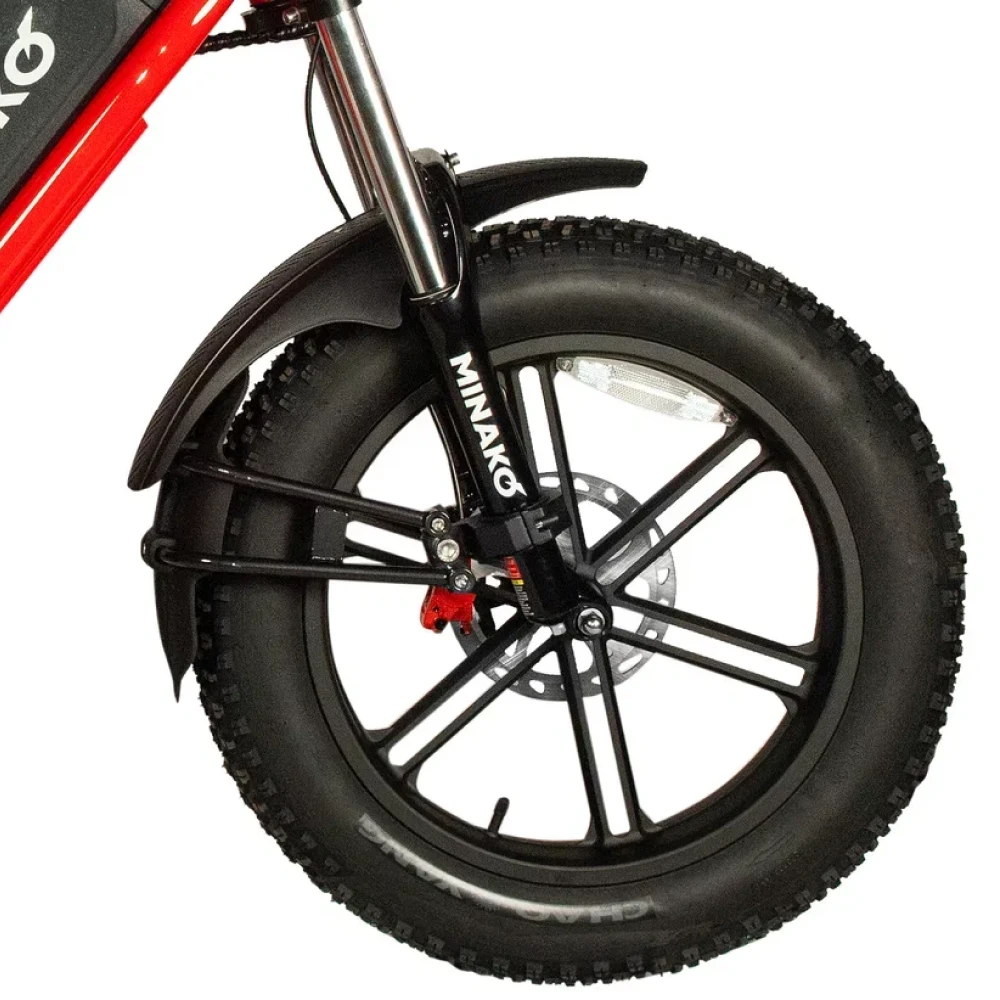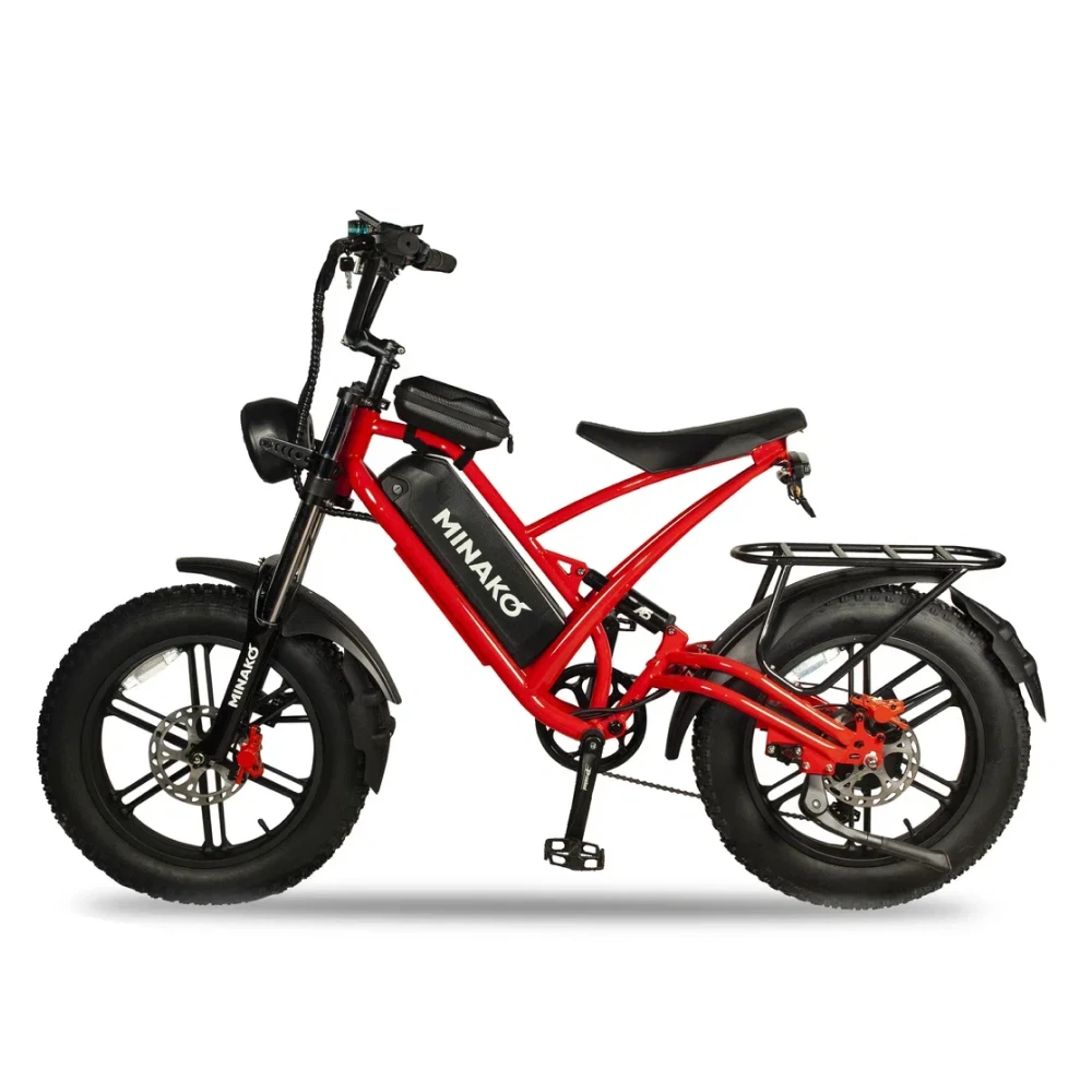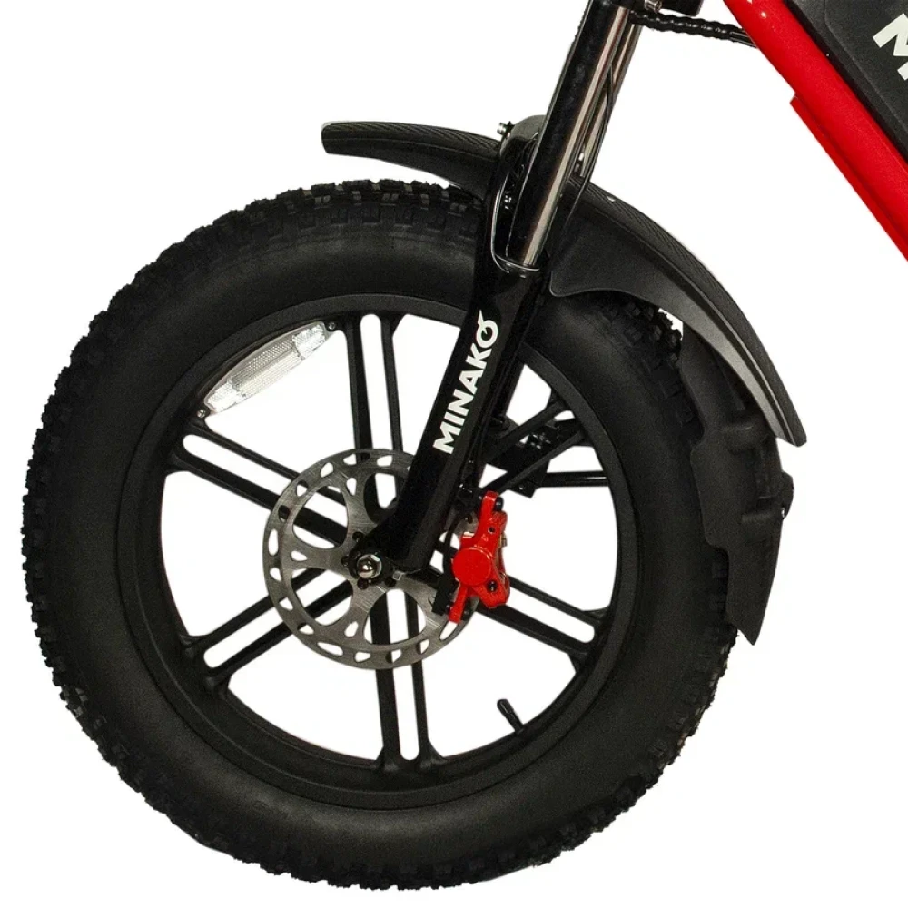 Электровелосипед Minako FOX (23Ah) - это сочетание прочности, стиля и технологий. Его красный цвет и литые диски привлекают взгляды, а максимальная скорость в 55 км/ч позволяет мчаться по дорогам с ветерком. Емкость батареи 23 Ah и мощность в 1000W обеспечивают пробег до 60 км на одном заряде. Дисковые гидравлические тормоза обеспечивают отличное торможение, а 20-дюймовые внедорожные покрышки позволяют уверенно чувствовать себя на любой поверхности. Дизайн велосипеда, напоминающий питбайк, подчеркивается мотоциклетной вилкой и большой фарой спереди. Сумка и багажник для пассажира добавляют практичности, а стоп-сигнал и амортизатор закрытого типа сзади - безопасности. Minako FOX - это не просто велосипед, это ваш новый стиль жизни.